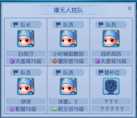 老白:队长是我,队伍最开始是我跟饼饼沐歌三人,服战前又被我坑蒙拐骗来了一只太虚,一枚重阳,还有一条马赛克
