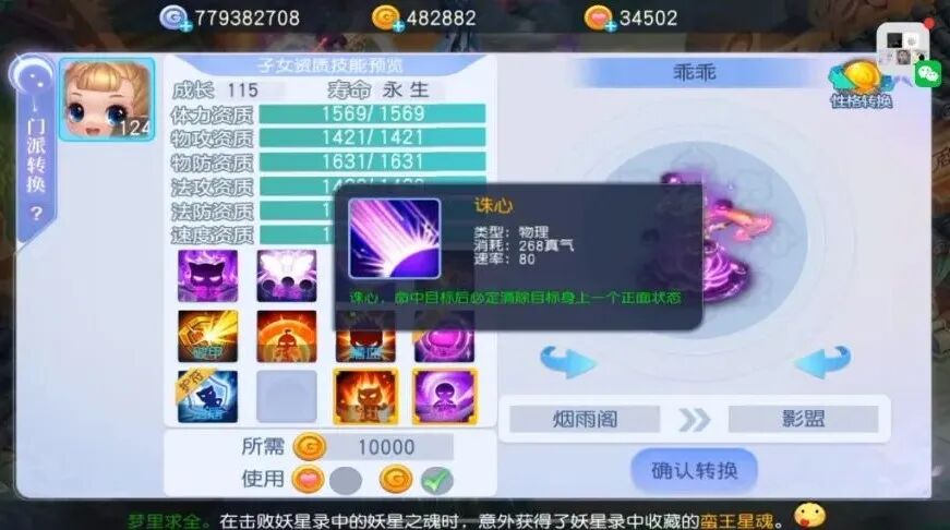 烟雨孩子真的强!它能够有效地控制敌方特技!虽然说概率过低,但是经过子女秘籍的加强封印不中,会给对方带来一个平息的状态!