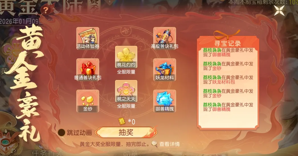 请少主抽中实物后及时登记,避免错失奖励。