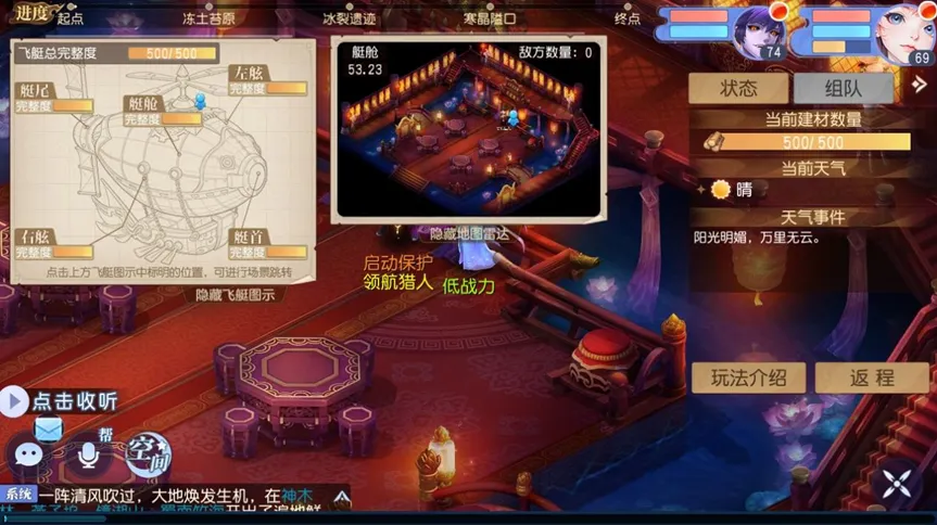 - 点击飞艇图示中对应的飞艇部位可帮助少主快速前往