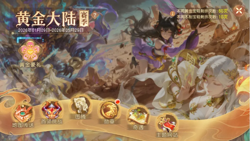 1.赛季宝箱分为木制宝箱和黄金宝箱;