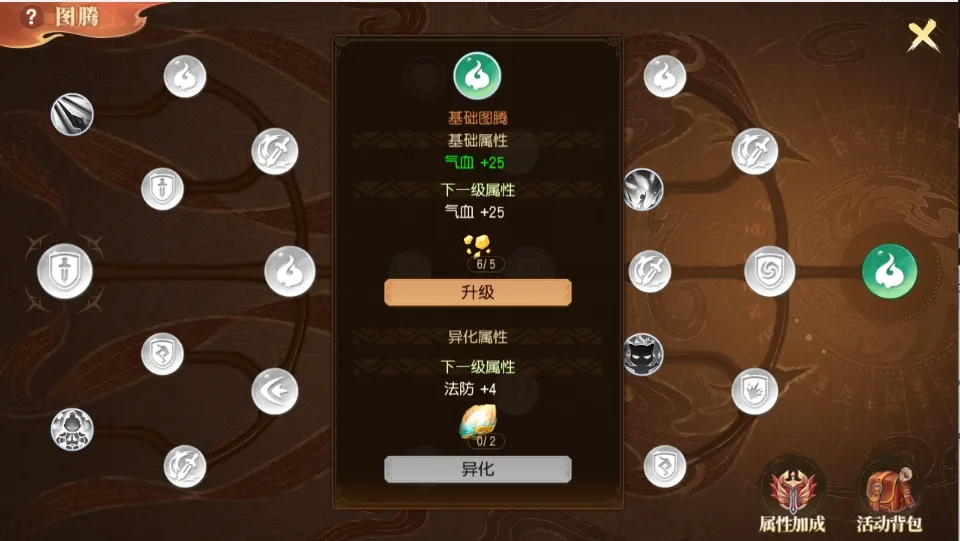 7、激活、升级、异化图腾需要不同的材料,点击节点可查看所需的材料。