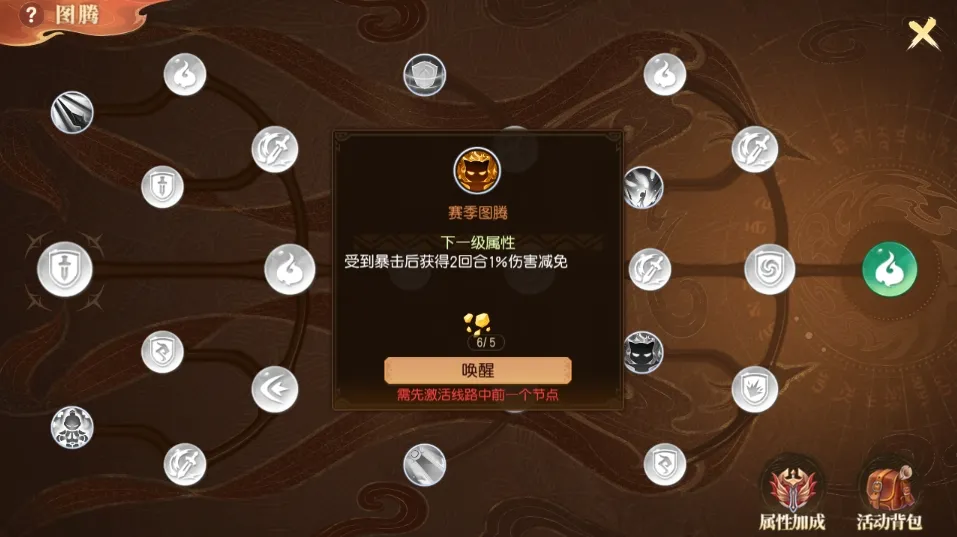 3、赛季图腾一共有18个节点,节点分为属性节点和技能节点。