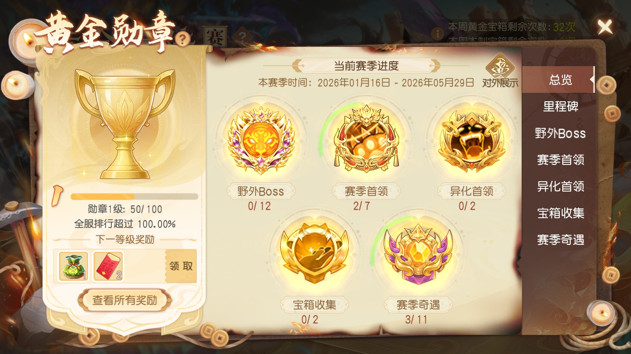 1️⃣ 完成赛季首领任务,获得【黄金券】