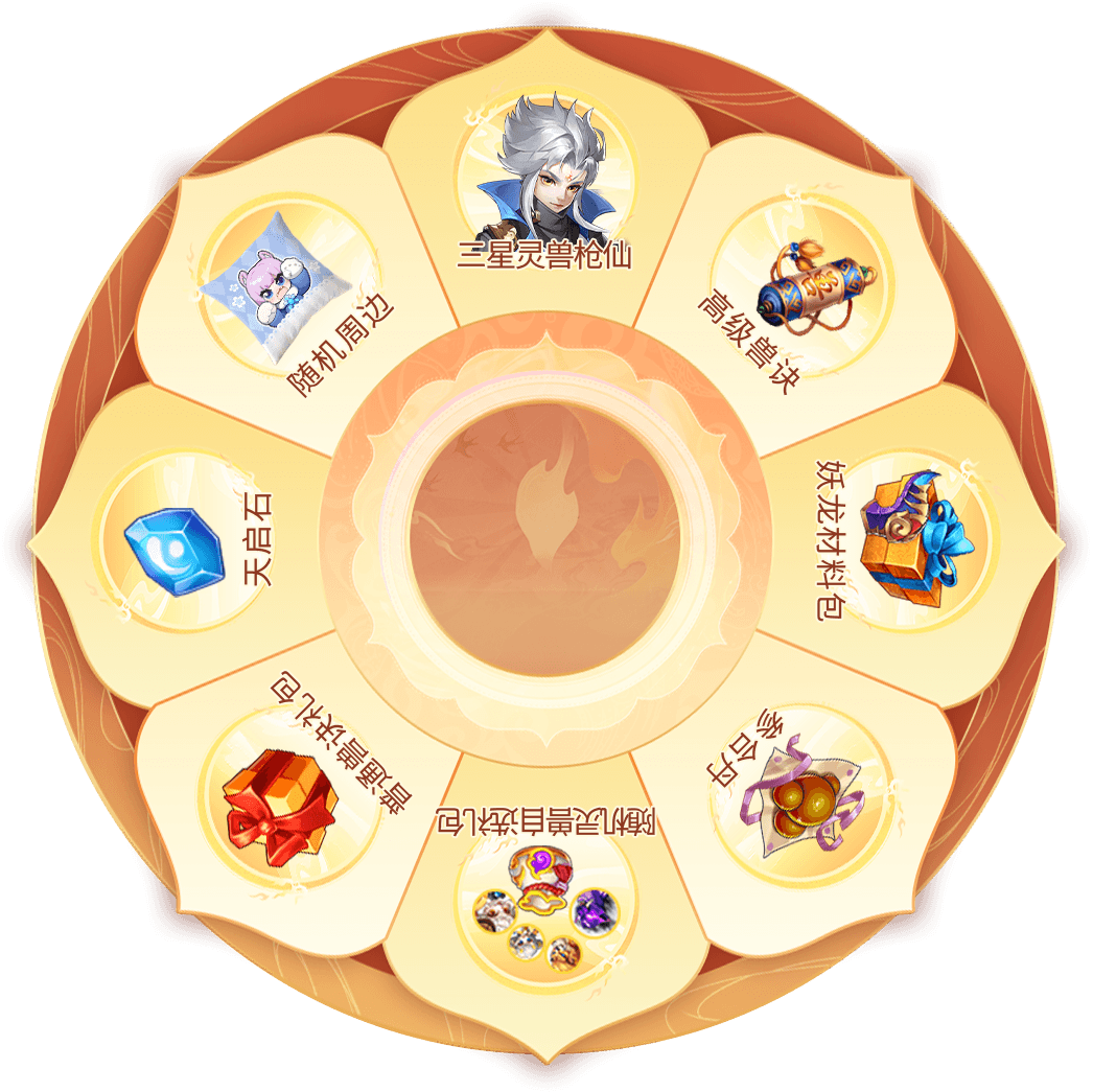 ①珍稀奖励:活动体验券、神拳北斗礼包、嘲风礼包、月灵兔精灵礼包、妖龙三星灵兽礼包、妖龙二星灵兽礼包、妖龙一星灵兽礼包、超级技能书礼盒、神拳北斗魂、嘲风魂、月灵兔精灵之光、八方来财主题币、神功等。